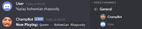 Listen to your favourite songs with your friends, using ChampBot's music feature.