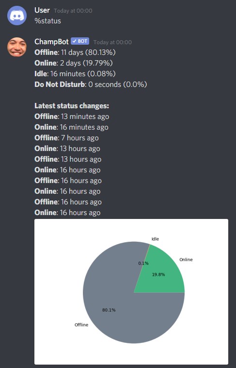 ChampBot can be used to track your status changes. View detailed information on how often you are online and offline.