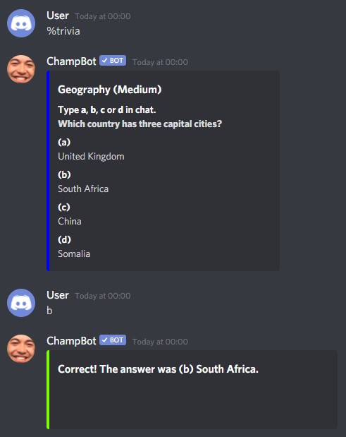 This is just scratching the surface of the dozens of unique, innovative commands that ChampBot has to offer. Add ChampBot to your server now!